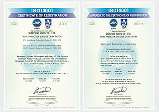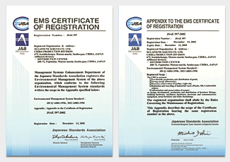 On December 13th 2002, Sugatsune Kogyo’s Chiba Production Division – Chiba Factory and Logistics Division – Logistics Center obtained environmental management ISO14001 certification.**